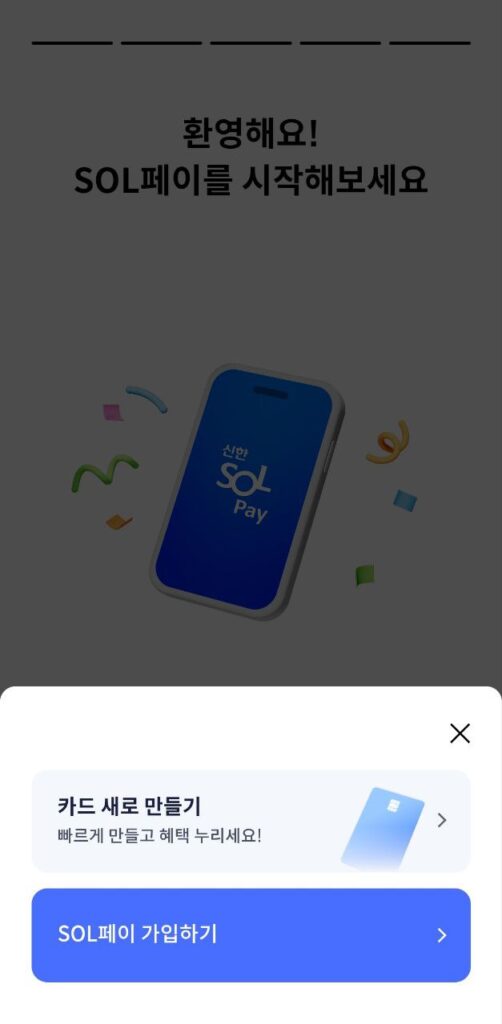 👉앱 실행 및 로그인: 앱을 실행한 후 신한SOL페이에 가입하고 로그인합니다. (카드사별 앱설치)